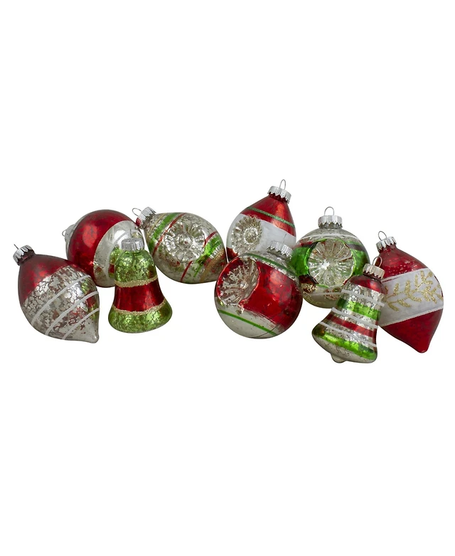 Finial and Glass Ball Christmas Ornaments Set, 12 Pieces