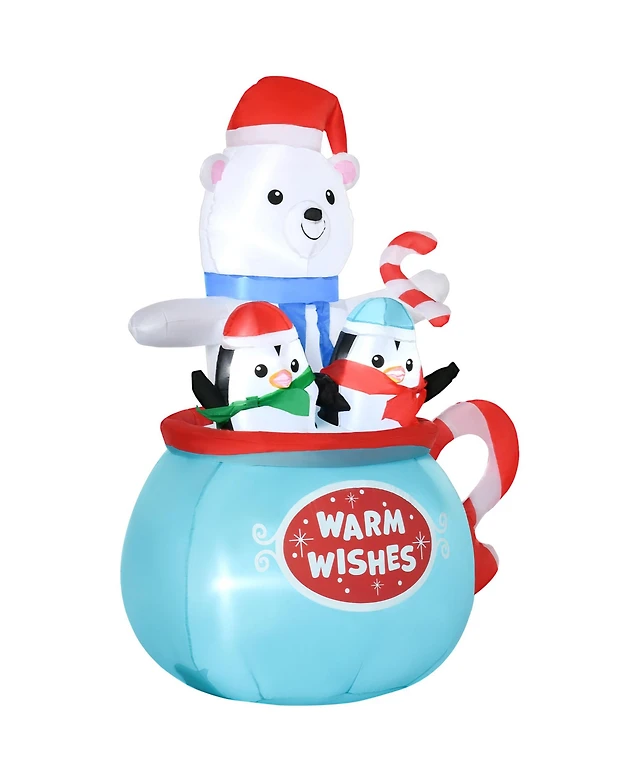 Homcom 6' Christmas Inflatable Snowman with Penguins Blow-Up Yard Decoration