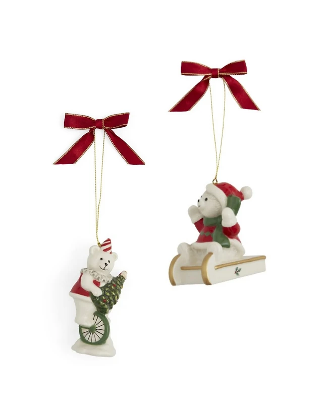 Spode Christmas Tree Teddy Bear Ornaments, Set of 2