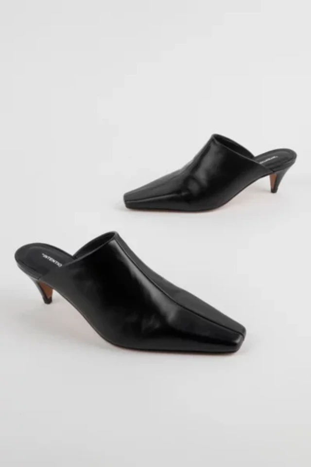 Reike Nen Pointed Ribbon Kitten-Heel Mules