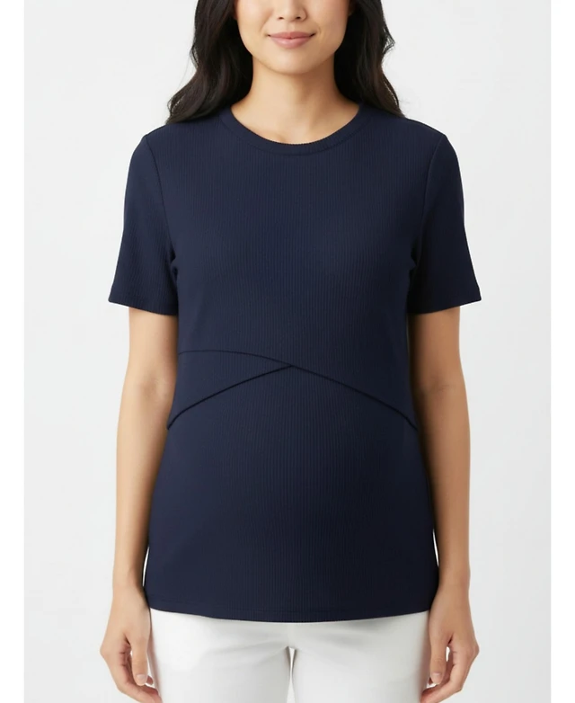 Motherhood Maternity Crew Neck Cross Over Nursing Short Sleeve Top