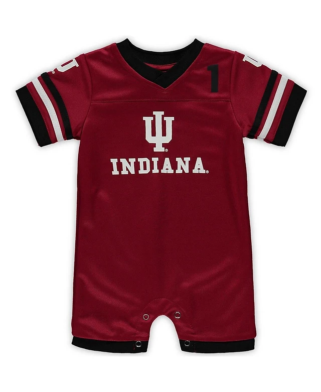 Newborn and Infant Boys and Girls Colosseum Crimson Indiana Hoosiers Bumpo Football Logo Romper