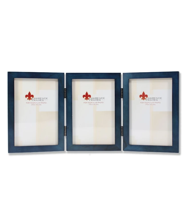Lawrence Frames Antique Gold Brass Hinged Triple Picture Frame - Beaded Edge Design - 2" x 3"