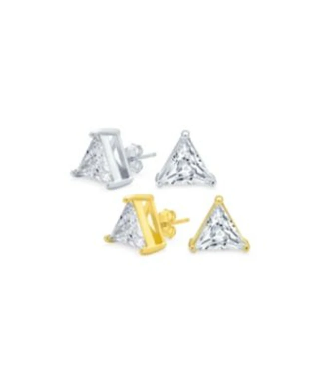 Bling Jewelry Set of 2 Triangle Clear Cubic Zirconia Stud Earrings Gold Plated Sterling Silver