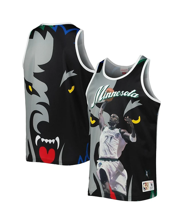Men's Mitchell & Ness Kevin Garnett Black and Gray Minnesota Timberwolves Sublimated Player Tank Top