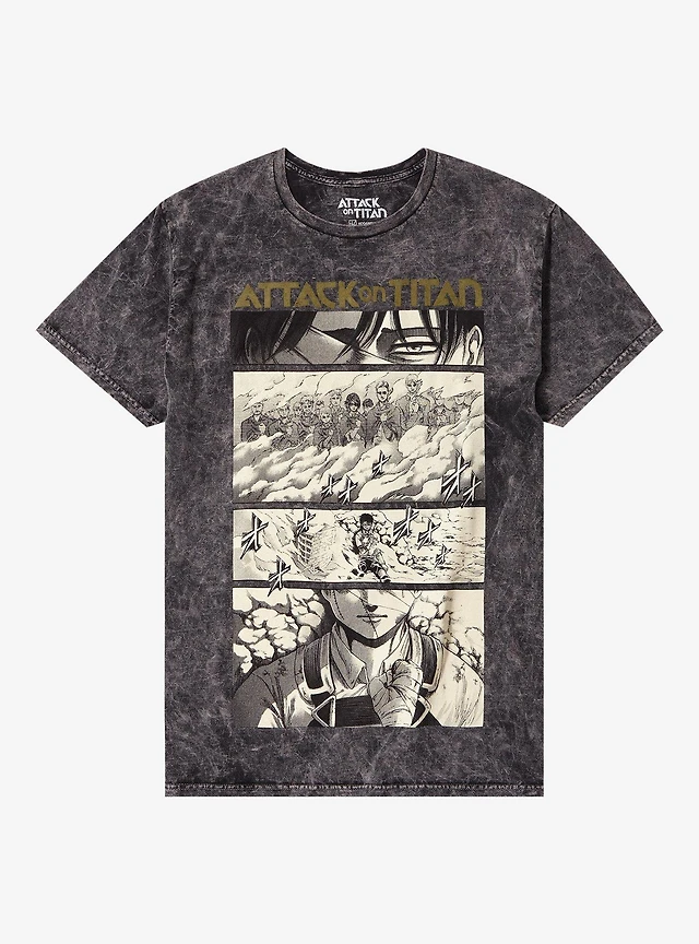 Attack On Titan Titans Manga Panels Mineral Wash T-Shirt