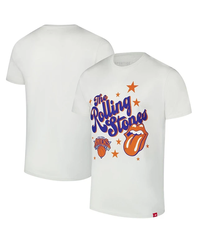 Sportiqe Men's and Women's White Rolling Stones x New York Knicks Bingham Collab T-Shirt