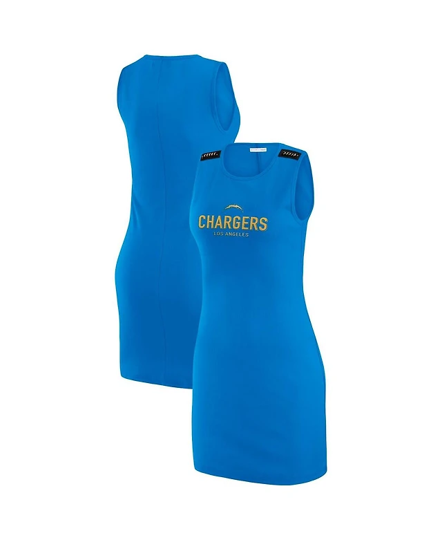 Fanatics Women's White/Powder Blue Los Angeles Chargers Athena Rhinestone Lace-Up V-Neck T-Shirt