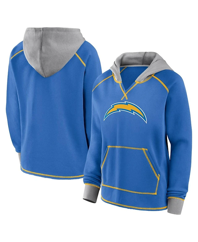 Logo Athletic Women's Powder Blue Los Angeles Chargers Boom Fleece Pullover V-Neck Hoodie