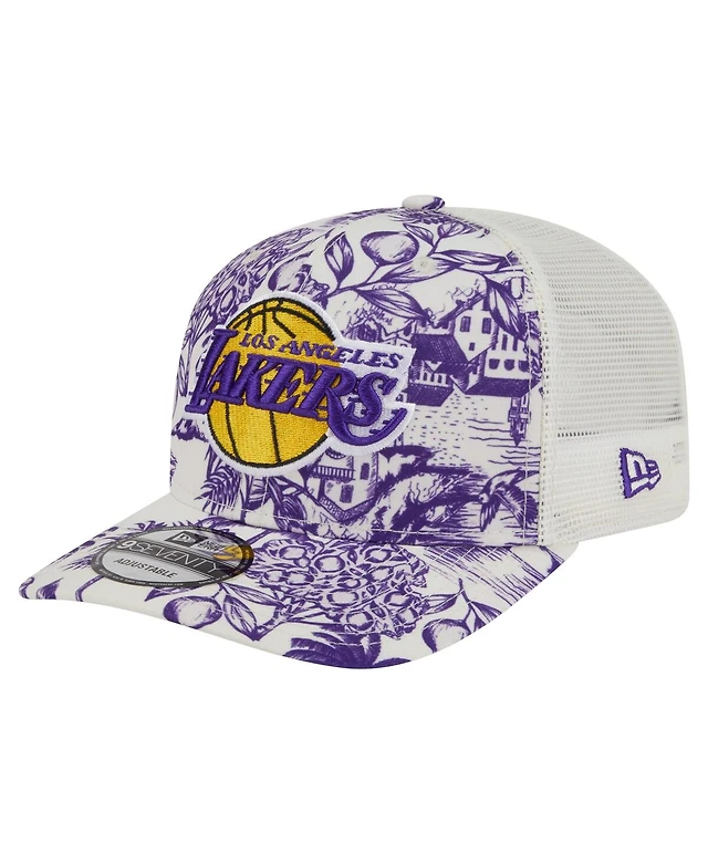 New Era Men's Purple Los Angeles Lakers Minimalist A-Frame 9FORTY Trucker Hat