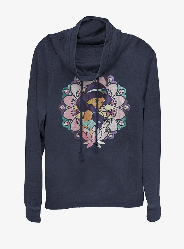Disney Princess Glass Jasmine Cowlneck Long-Sleeve Womens Top