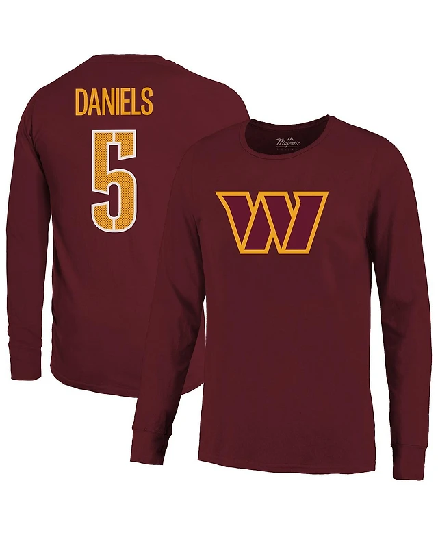 Majestic Men's Jayden Daniels Burgundy Washington Commanders Name Number Non-Distressed Long Sleeve T-Shirt