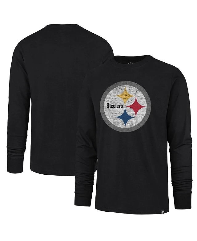 Men's '47 Brand Black Distressed Pittsburgh Steelers Premier Franklin Long Sleeve T-shirt