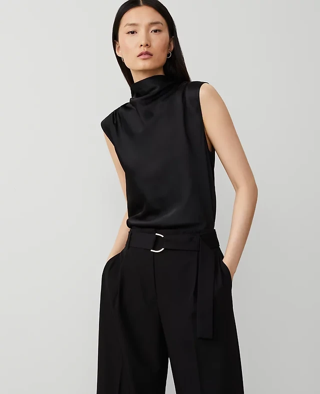 Ann Taylor Petite Floral Mixed Media Top Black Women's