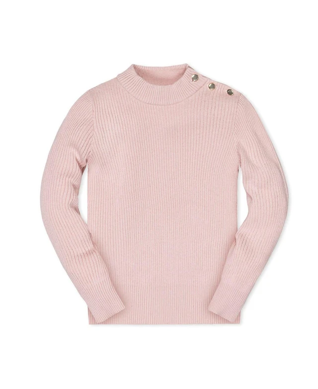 Hope & Henry Girls Organic Long Sleeve Mock Neck Sweater with Gold Buttons