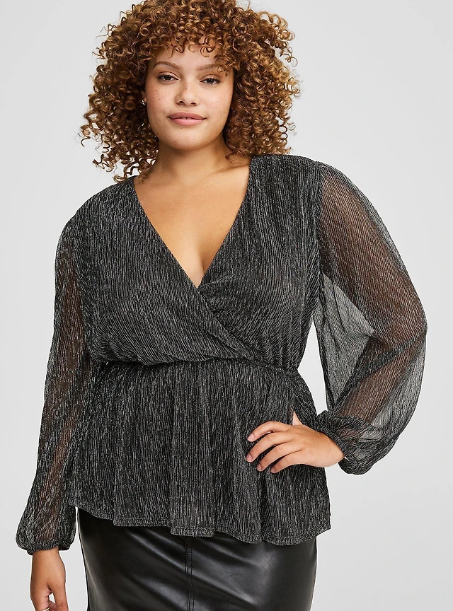 Chiffon Long-Sleeve Off-The-Shoulder Top