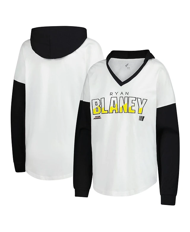 G-iii 4Her by Carl Banks Women's White/Black Ryan Blaney Bench Player Oversized Long Sleeve Hoodie V-Neck T-Shirt