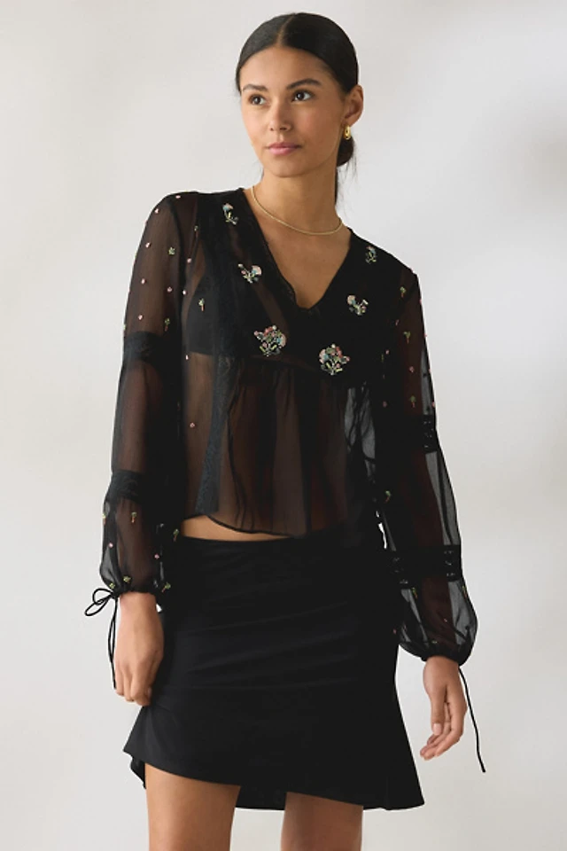 Vince Camuto Women's V-neck Tulip Sleeve Blouse