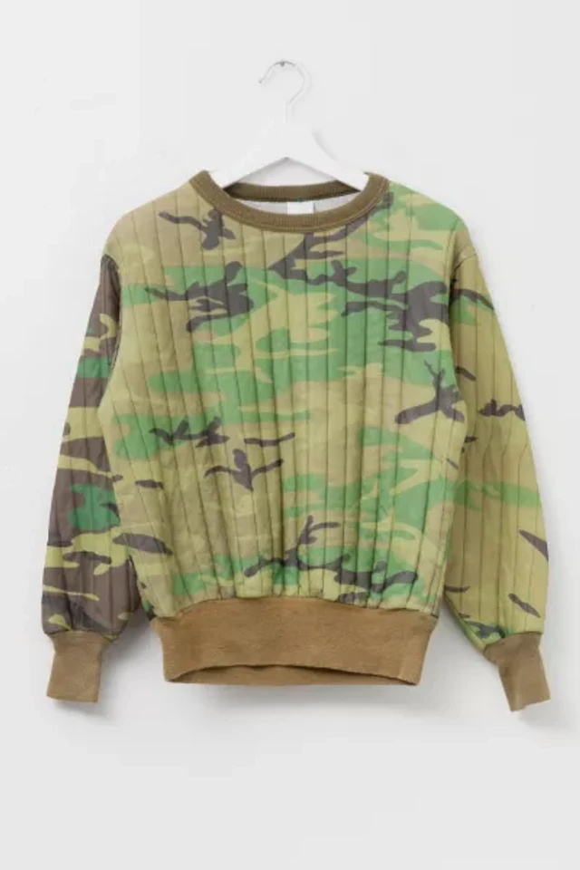 Vintage 1980s Distressed Camouflage Long Sleeve Insulated Thermal Sweatshirt