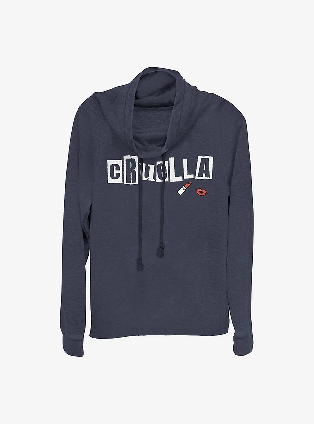 Disney Cruella Lip Cut Out Name Cowlneck Long-Sleeve Girls Top