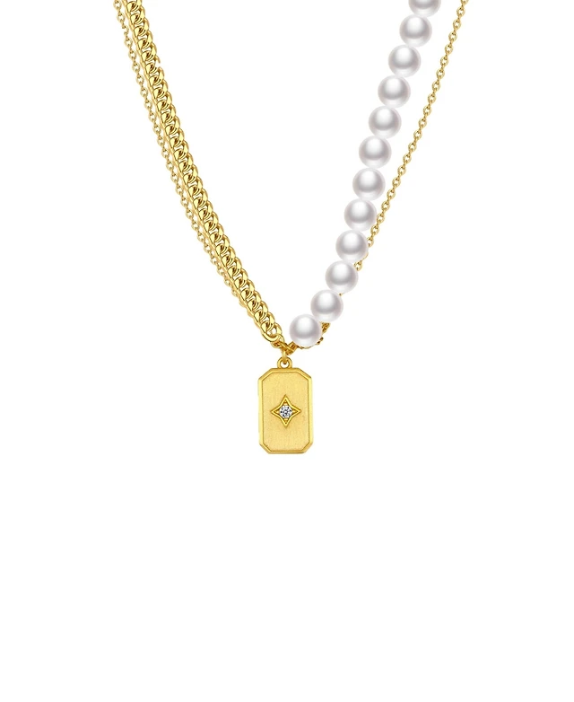 Cultured Pearl Pave Initial Necklace