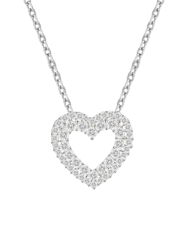 14K Gold Plated with Clear Cubic Zirconia Slim Heart Pendant Necklace