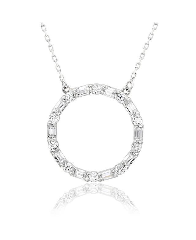 Suzy Levian Sterling Silver Cubic Zirconia Alternating Round & Baguette Open Circle Pendant Necklace