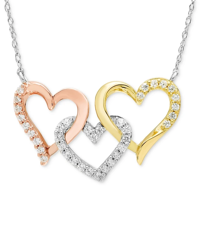 Diamond Heart 18" Statement Necklace (1/4 ct. t.w.) in 14k Tri-Color Gold