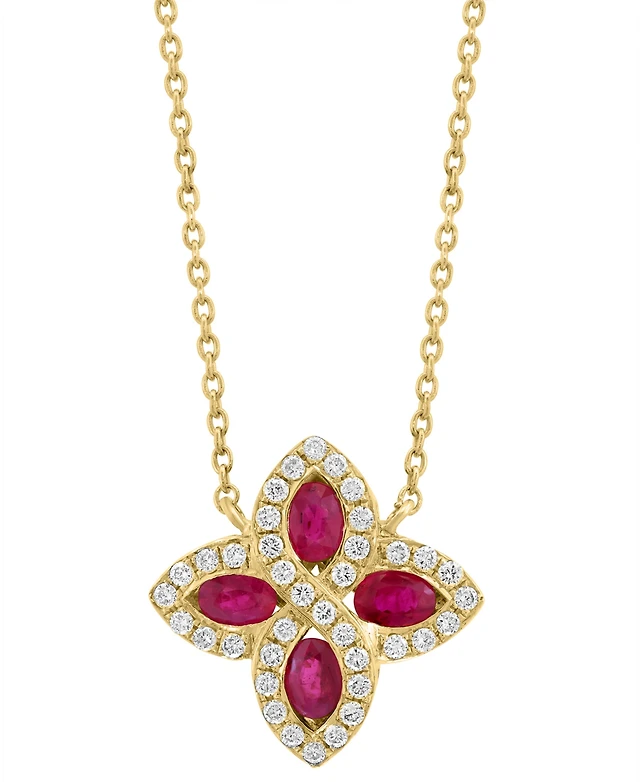 Effy Ruby (7/8 ct. t.w.) & Diamond (1/4 ct. t.w.) Flower 18" Pendant Necklace in 14k Gold