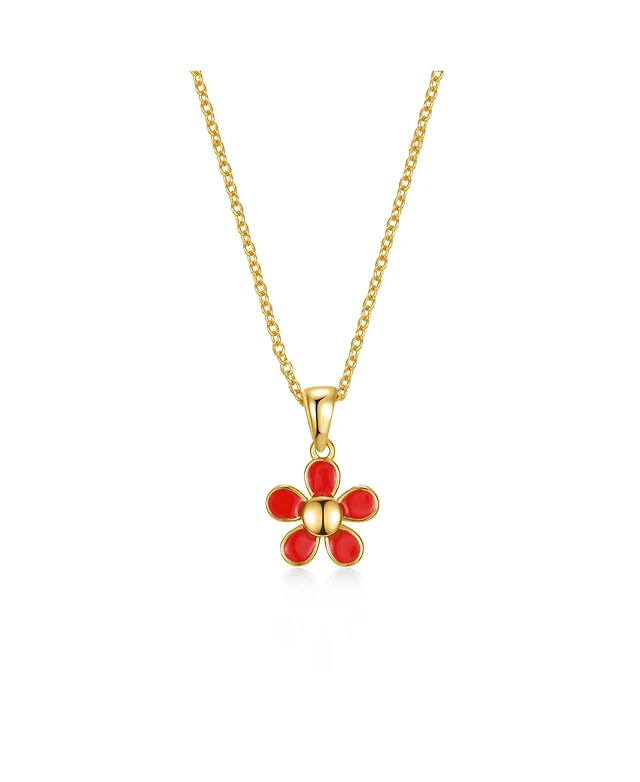 GiGiGirl 14k Yellow Gold Plated Red Enamel Blooming Flower Layering Necklace for Toddler/Kids