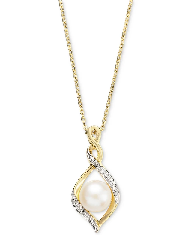 Cultured Freshwater Pearl (8mm) & Diamond Accent Swirl 18" Pendant Necklace in Sterling Silver