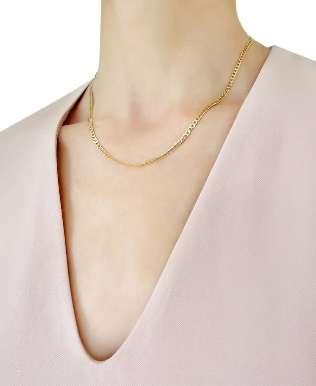 Concave Curb Link Chain Necklaces In 14k Gold Plated Sterling Silver