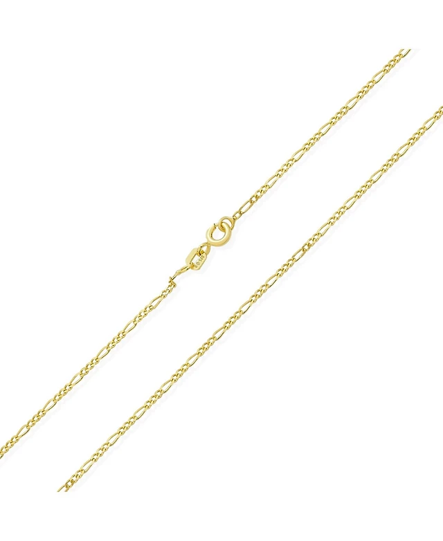 Bling Jewelry Thin Lightweight 1.2MM Strong Solid Gold Plated Sterling Silver Figaro Link Chain Necklace