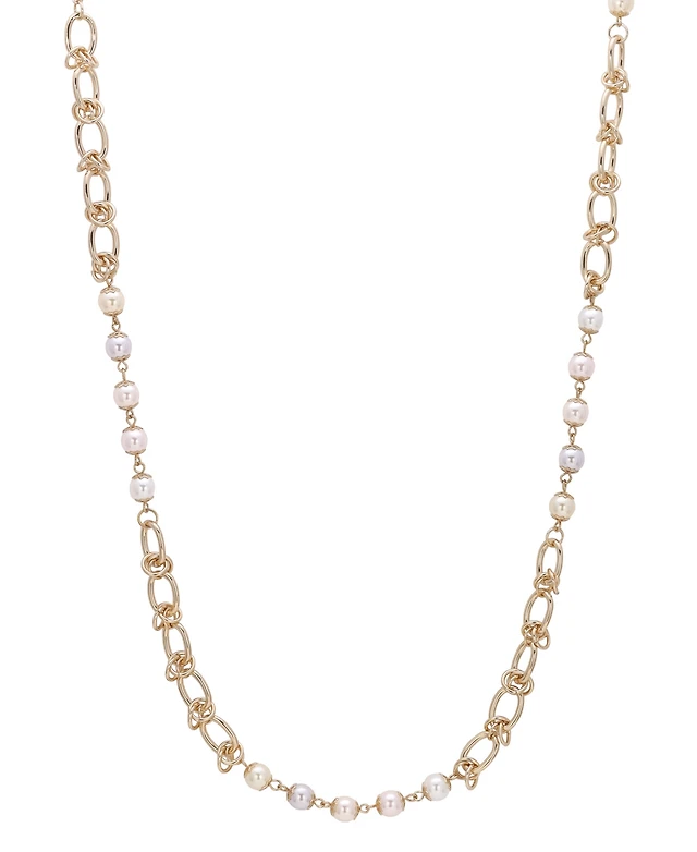 2028 Gold-Tone Multi-Color Imitation Pearl Chain Strand Necklace