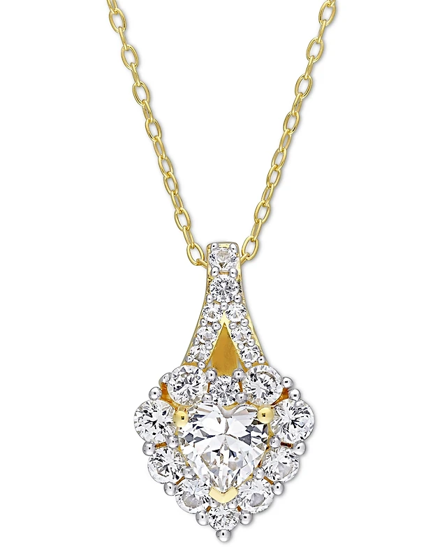Lab-Grown White Sapphire Heart Halo 18" Pendant Necklace (2-7/8 ct. t.w.) in Yellow-Plated Sterling Silver