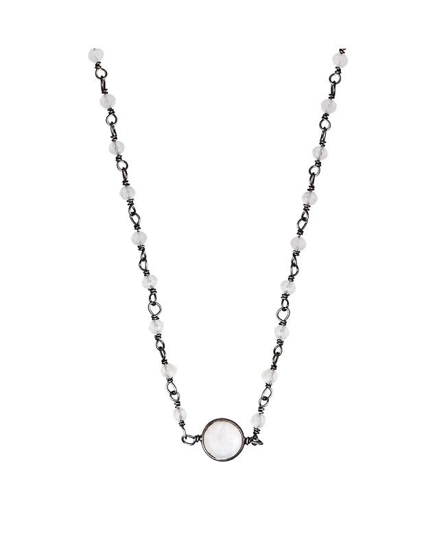 Adornia Fine Labradorite Rosary Necklace with Moonstone Center Stone black rhdodium .925 sterling silver