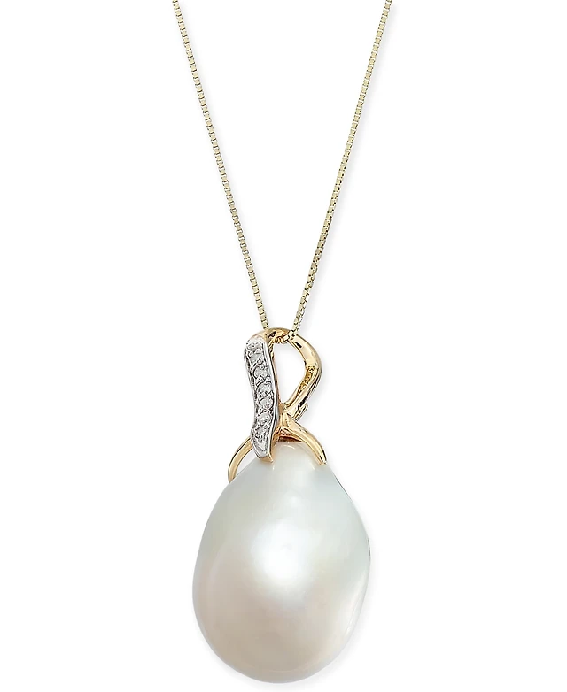 Macy's Cultured Freshwater Pearl (10mm) and Cubic Zirconia Necklace in 14k Gold Over Sterling Silver
