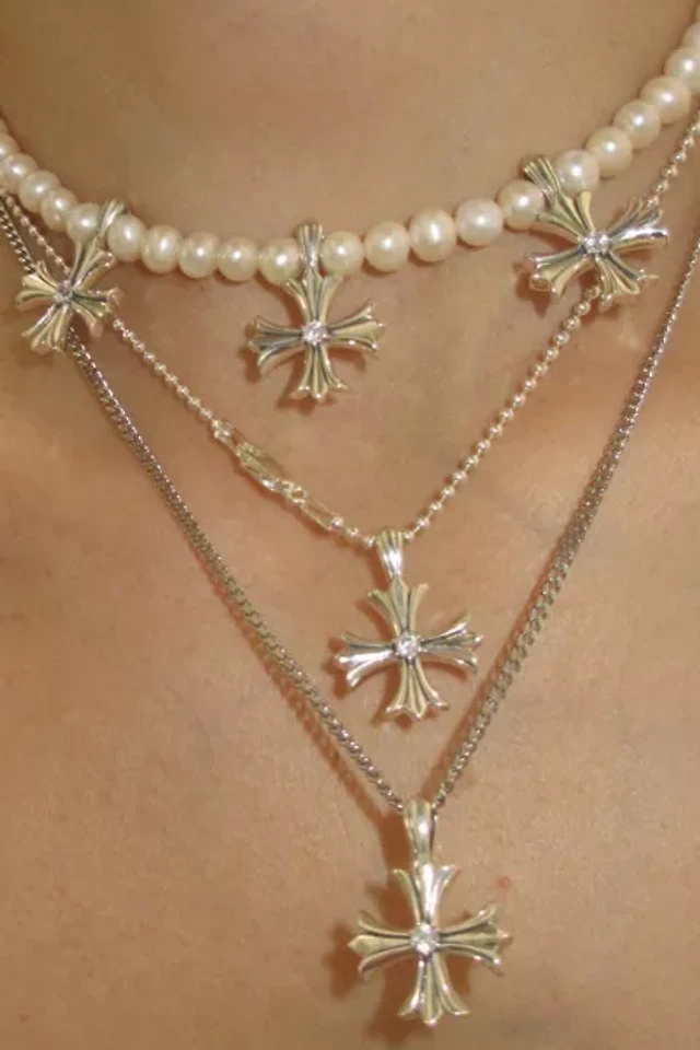 Cultured Pearl Station Necklace Sterling Silver 17"