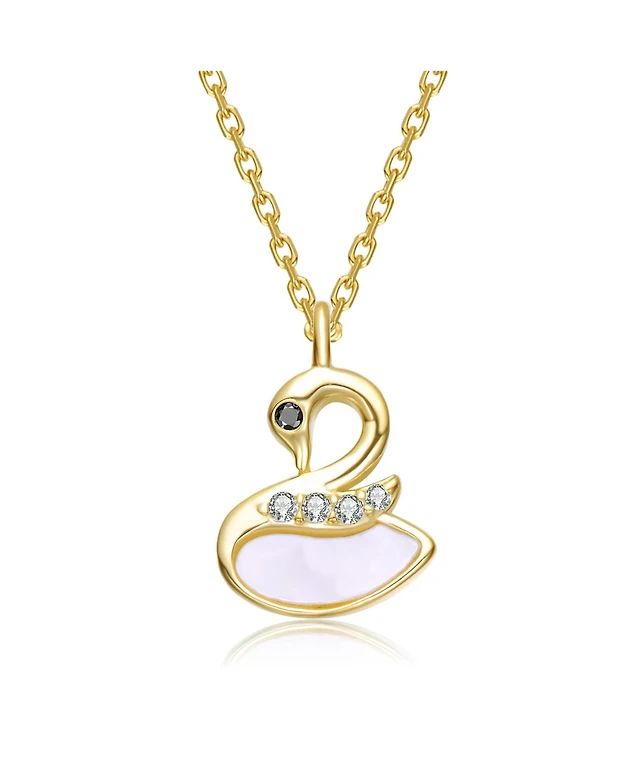 GiGiGirl 14K Gold Plated with Black Eyes, Clear Cubic Zirconia Graceful Swan Design Pendant Necklace For Kids