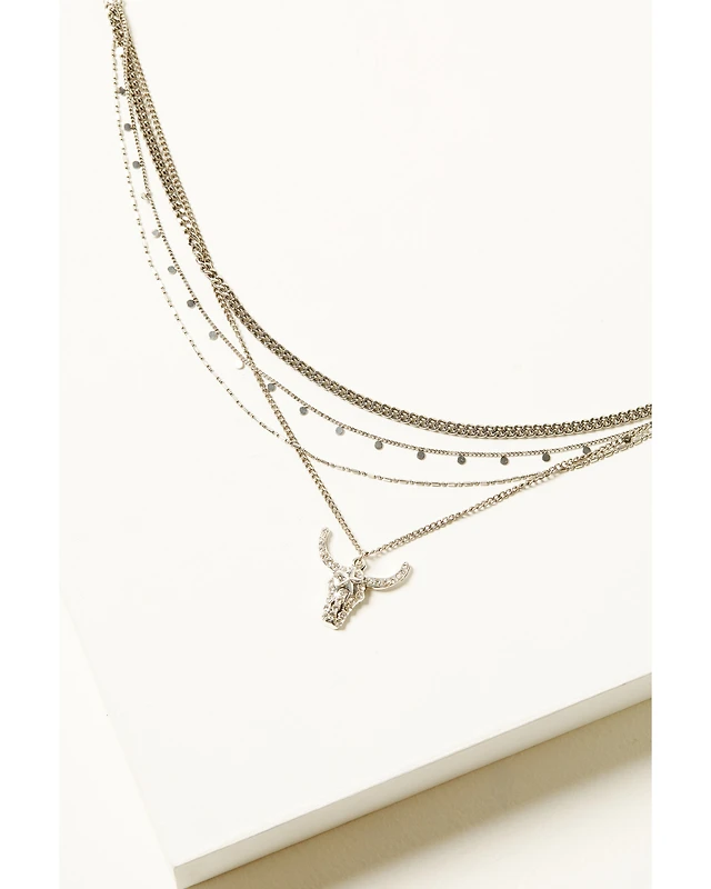 Jessica Simpson Turquoise & Feather Pendant Necklace in Antique Silver