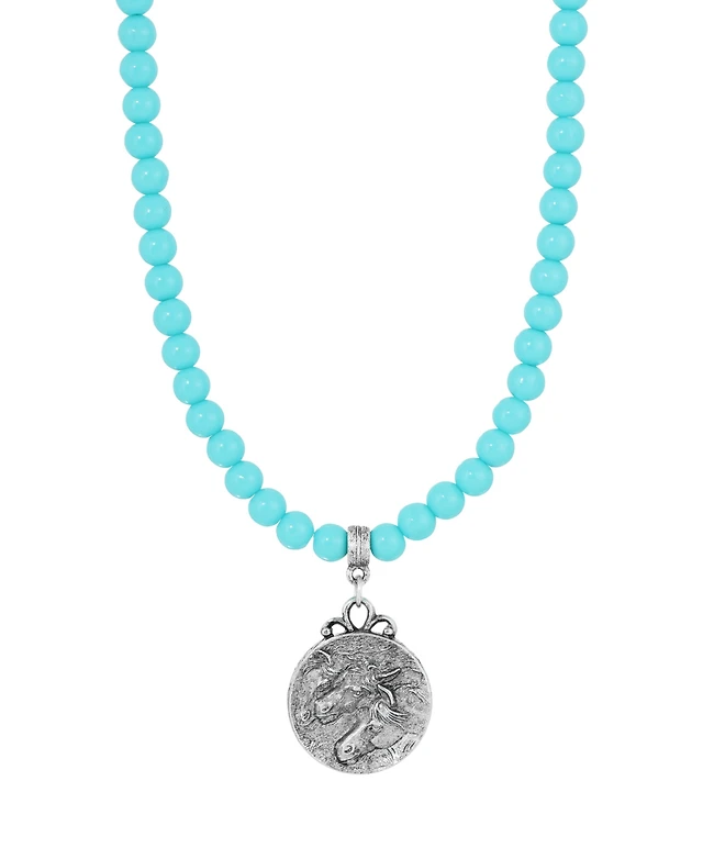 2028 Acrylic Faux Turquoise Bead Horse Pendant Necklace