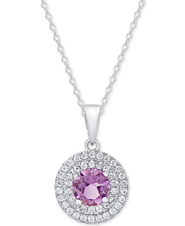 Blue Topaz (2-1/3 ct. t.w.) and Diamond (1/10 ct. t.w.) Pendant Necklace in Sterling Silver. Also Available in Amethyst