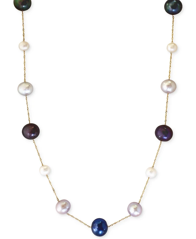 Freshwater Cultured Pearl Necklace in 14K Gold with Cloisonné and Bead Accents