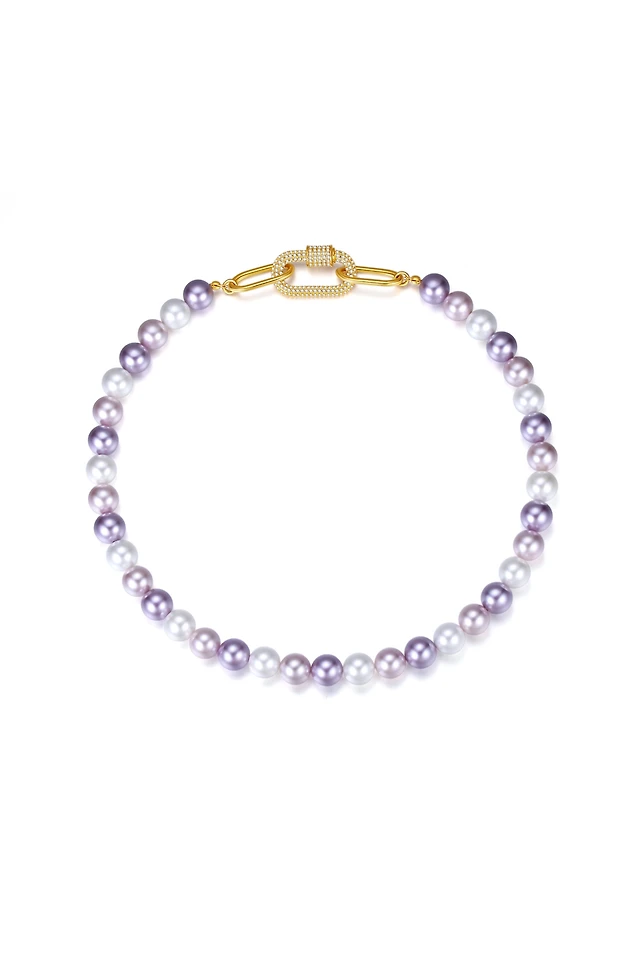 Cultured Freshwater Pearl (4-5mm) & Multicolor Tourmaline 18" Collar Necklace in Sterling Silver