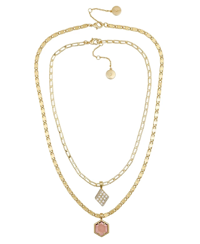 Juicy Couture Gold-Tone Charm Necklace with Pink Enamel Accents and Crystal Details
