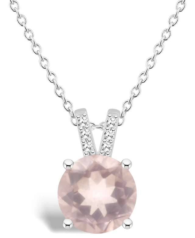 Macy's Women's Rose Quartz (1-/ ct.t.w.) and Diamond Accent Pendant Necklace in Sterling Silver