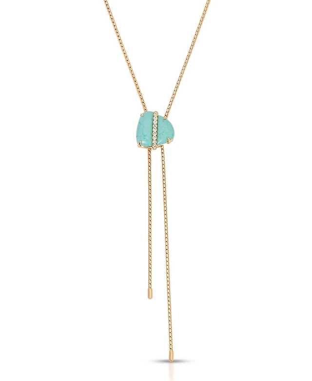 Effy Collection Diamond (1/10 ct. t.w.) & Turquoise Pendant Necklace in 14k Yellow Gold