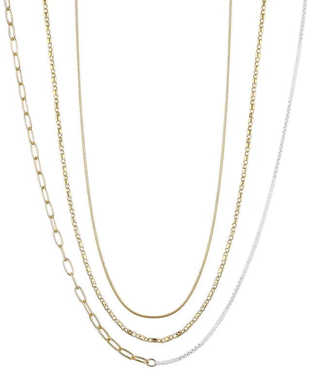 Unwritten 14k Gold Flash Plated White Enamel Paperclip Herringbone Chain Layered Necklaces, 3 Piece Set