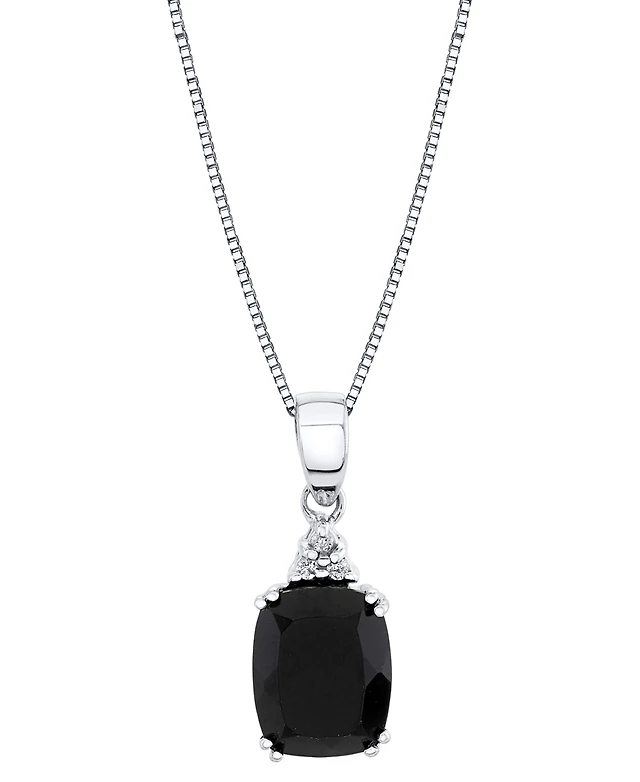 Onyx Happiness Dog Tag 18" Pendant Necklace in Sterling Silver