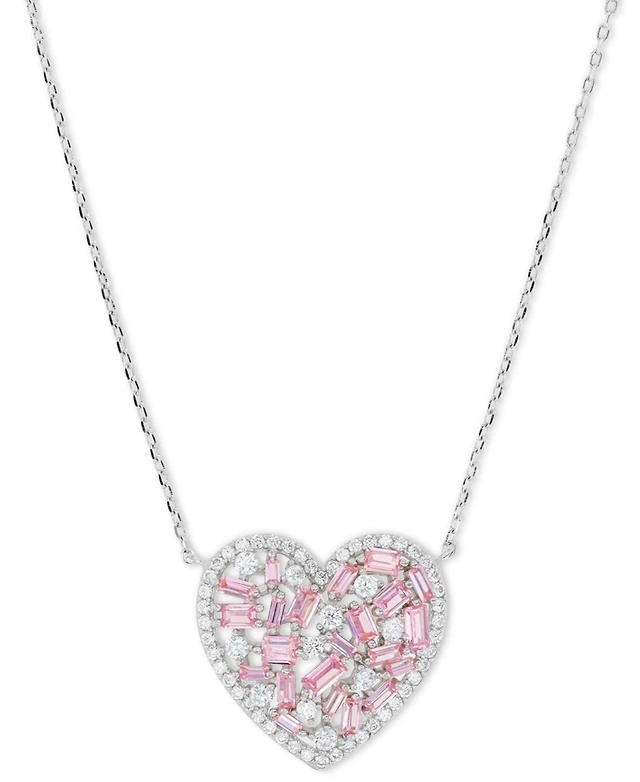 Lab Grown White Sapphire (3/4 ct. t.w.) 18" Heart Pendant Necklace in Sterling Silver